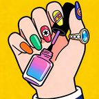 For mobile devices: tap on the screen to choose the nail polish or sticker, then press and slide your finger to paint.